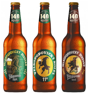 Motiv kozla se na pivních lahvích objevuje od roku 1922, kdy si pivovar ve Velkých Popovicích zaregistroval značku a název Velkopopovický Kozel.