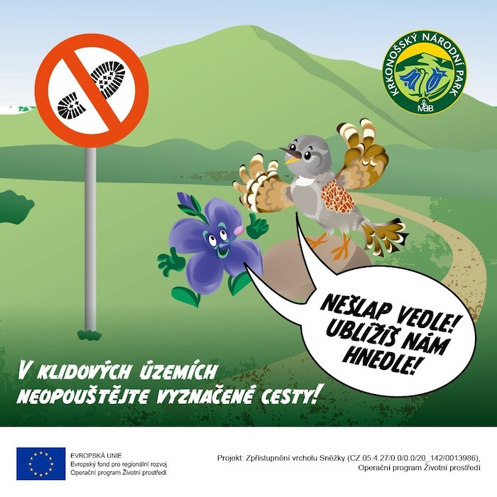KRNAP se v nové kampani zaměřuje na zákaz opouštět značené cesty