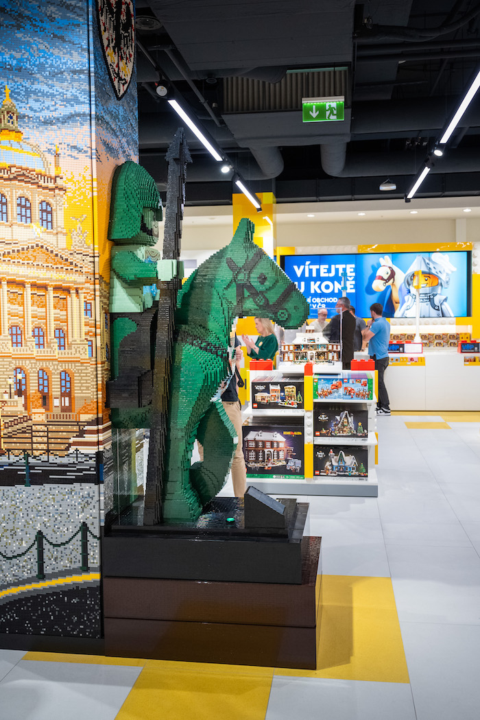 Návštěvníky obchodu přivítá unikátní 3D model Lego inspirovaný českou historií. Jde o mluvícího rytíře na koni, který je vysoký přes 2,5 metru. Kromě něj je k vidění replika pohledu na Václavské náměstí včetně Národního muzea v pozadí a dále mozaika připomínající další české památky a známá místa.