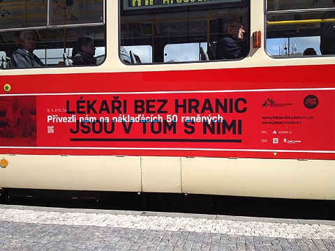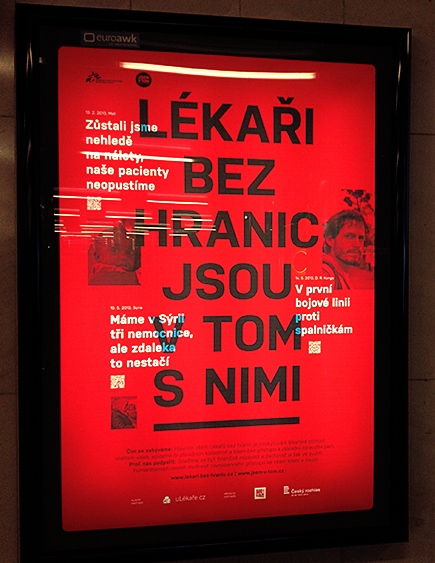 Mezinárodní organizace Lékaři bez hranic, která poskytuje zdravotnickou a humanitární pomoc v 72 zemích po celém světě, dlouhodobě komunikuje v outdooru. Letošní kampaň se sloganem „Lékaři bez hranic jsou v tom s nimi“ je postavena na autentických zprávách z krizových oblastí.