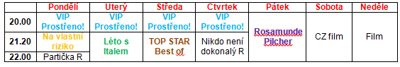 Pořad VIP Prostřeno! bude tvořit základ letního programového schématu Prima family. Ve vysílání se objeví od pondělí do čtvrtka od 20:00. Pořad, ve kterém budou vařit celebrity (např. Hanychová, Pomeje, Gavriely, Decastelo, herci ze seriálu Cesty domů či nově připravovaného Obchoďáku), odstartuje v pondělí 25. června.