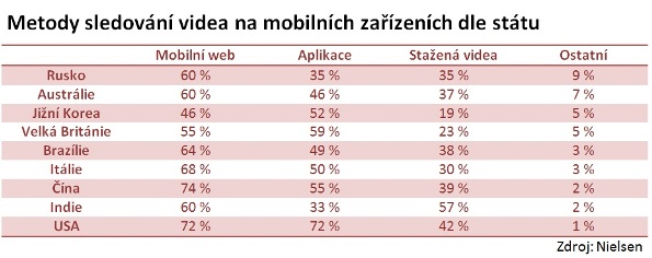 Zmiňovaná studie doplňuje informace, které v loňském roce zjistila výzkumná agentura Nielsen. Ta odhalila, že uživatelé ve většině zemí preferují sledování videa přímo v mobilním přehrávači. A to s výjimkou Velké Británie a Jižní Koreji, kde lidé upřednostňují přehrávání v rámci mobilní aplikace.