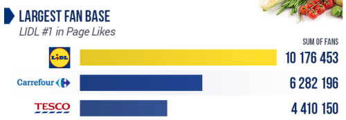 Lidl překročil 27. února 2014 hranici 10 milionů fanoušků na sociální síti Facebook, a dostal se tak v Evropě do čela potravinových řetězců, což dokládá i studie „Lidl Now #1 European Food Retailer on Facebook” od Socialbakers, jež se zabývá monitoringem sociálních médií.