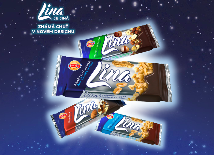 „Zásadní změnou je jednotný barevný kód pro všechny čtyři příchutě, díky kterému vznikne v regálu snadno identifikovatelný modrý blok. Jednotlivé příchutě pak spotřebitel lehce rozezná dle příchuťových proužků,“ popisuje redesign Světlana Votočková, senior brand manager společnosti I.D.C. Praha, do jejíhož portfolia značka Lina patří.