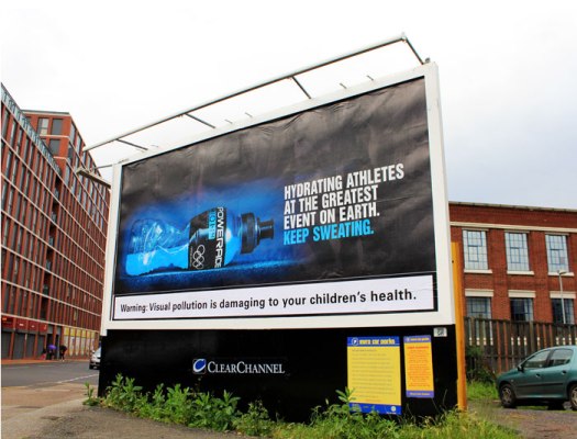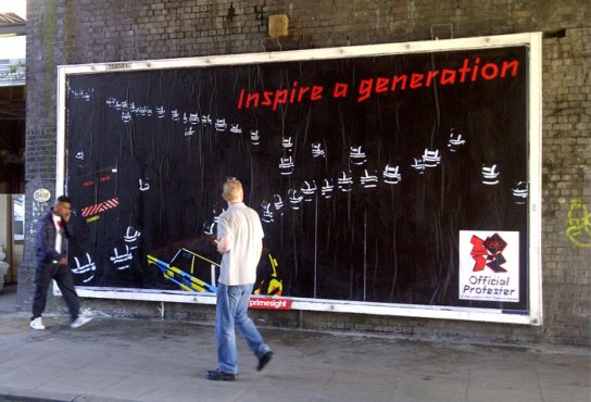 Guerillová kampaň mezinárodní skupiny Brandalism, čítající 24 umělců ze šesti zemí, se před vypuknutím letní olympiády zaměřila na venkovní reklamu. Během pěti dnů v pěti britských městech, včetně Londýna, přelepila 37 venkovních reklamních ploch provozovatelů Clear Channel, JCDecaux and Primesight na znamení svého protestu proti všudypřítomné reklamě.