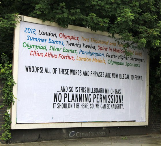 Další billboardy otevřeně protestovaly proti reklamnímu šílenství kolem Letních olympijských her.