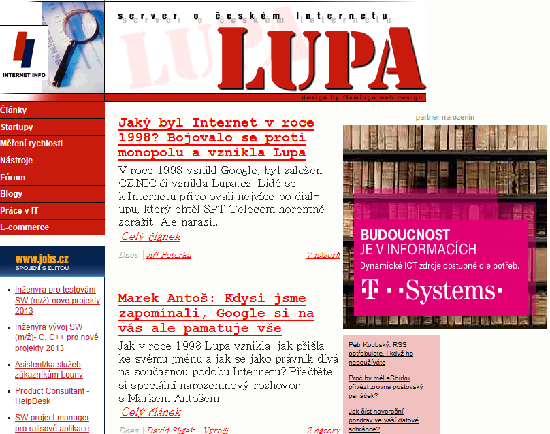 Server Lupa.cz z portfolia společnosti Internet Info změnil při příležitosti svého patnáctého výročí design své home page za „původní”. Server o českém internetu byl založen 2. dubna 1998. Při příležitosti patnáctiletých oslav přinesl i několik textů o proměně českého internetu.