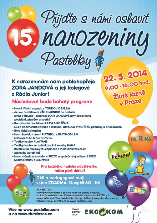 Časopis Pastelka, jenž se zaměřuje na děti předškolního a mladšího školního věku, oslaví letos svých 15 let. U této příležitosti pořádá časopis oslavu pro děti a jejich rodiče 22. května v pražských Žlutých lázních.