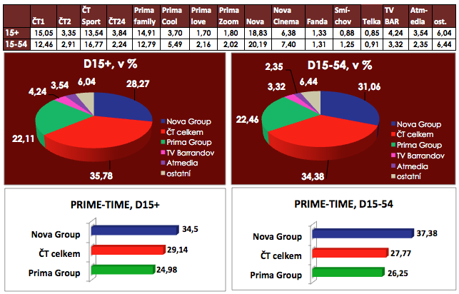 | Televizní noviny | Nova | 19:30 | 1701 | 42,9 | 41,9 |