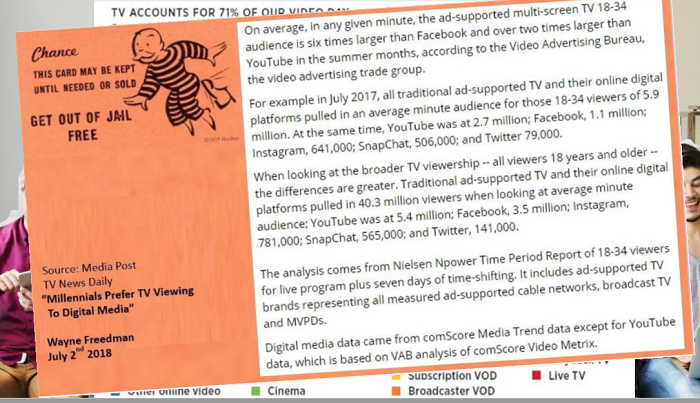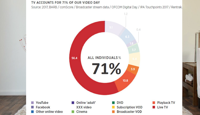 Stávající marketingové myšlení podle Ritsona nadhodnocuje efekt digitálních médií. Ani mobilní video, přestože v posledních letech značně rostlo, není podle jeho názoru rozhodujícím médiem budoucnosti. „Mobilní video je malé, sledujeme ho příležitostně, když nemáme přístup k velké obrazovce,“ popsal. Jak například ukazují data z rozsáhlých výzkumů BARB, ComScore nebo IPA Touchpoints, více než dvě třetiny (71 %) ze všech odsledovaných videí se stále odehrává přes televizní obrazovku (tzv. živé TV sledování) a dokonce i ve skupině mladých lidí (mileniálů) je to téměř polovina (47 %) zhlédnutého video obsahu, která se sleduje na TV obrazovce. Ještě významnější má být vliv televize pro reklamní video obsah, kde většina reklamních spotů (90 %) je zhlédnuta na televizní obrazovce.