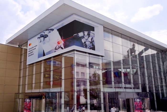 Vedle Budějovického Budvaru a Komerční banky je jedním z prvních zadavatelů, který využívá 3D venkovní reklamu, i Mastercard. Nad vstupem do pražského obchodního centra Galerie Harfa prezentuje pomocí trojrozměrné a anamorfní projekce své platební karty Touch Card.