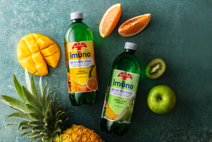 Řada Mattoni Imuno přichází v nové receptuře. Obě varianty – mango s pomerančem i jablko s kiwi a ananasem – nově obsahují dvojnásobnou dávku vitamínů B6, B12, D3 a zinek, které jsou zásadní pro podporu normální funkce imunitního systému.
