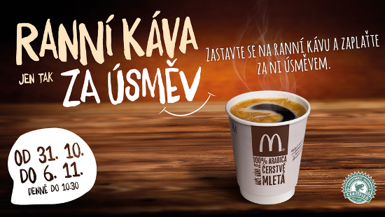 Řetězec rychlého občerstvení McDonald’s v týdnu od 31. října do 6. listopadu ve všech svých restauracích, s výjimkou McCafé, rozdává kávu za úsměv. Jedna osoba může dostat až dvě kávy, každý den až do 10:30.
