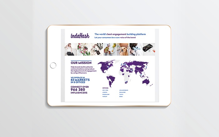 Platforma IndaHash funguje na rychlém a automatickém přiřazování vhodných influencerů dle zaměření značky a požadavků stanovených tvůrcem reklamní kampaně. Z větší části spolupracuje s mikro influencery, ale i s midi a makro influencery. Jedná se o nástroj, který umožňuje oslovit potenciální zákazníky fotografiemi či krátkými videi, sdílenými běžnými lidmi. Výhodou má být i to, že nevyžaduje individuální podepisování smluv s každým influencerem zvlášť.