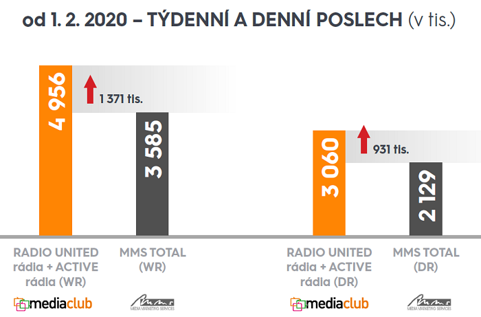 „Media Club se tak stane největším, ale zároveň i nejsilnějším zastupitelstvím a hráčem na poli poskytování reklamy na českém trhu. Jeho podíl na trhu v meziročním srovnání dosáhne hodnoty 44,3 % a vzroste tak o 17,7 procentního bodu,“ řekl Jan Čadek. Týdenní poslechovost podle posledních čísel Radio projektu za první pololetí 2019 má dosáhnout 4,96 mil. posluchačů (56 % populace ČR). Denní poslechovost rádií Media Clubu se po přidání rádií od skupiny Active zvýší o necelý milion na 3,06 mil. posluchačů.