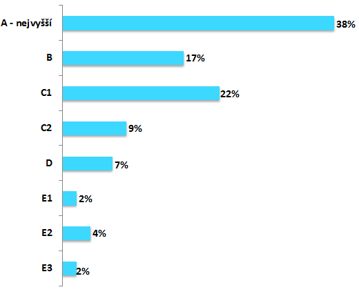 Pozn.: Skupina A: Jde o domácnosti, v nichž hlava domácnosti má vysoce prestižní zaměstnání, nejvyšší úroveň vzdělání a pohybuje se v nejvyšších řídících funkcích.