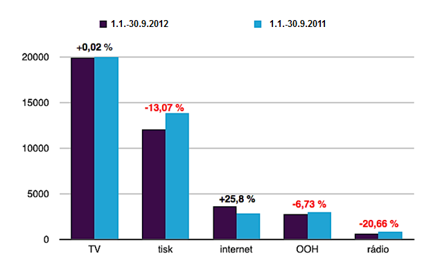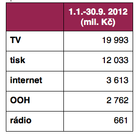 Za první tři letošní čtvrtletí vložili zadavatelé do tuzemských médií podle hrubých monitorovaných investic 39 mld. Kč, což je o 3,5 % (1,436 mld. Kč) méně než za stejné období vloni. I monitoring tak potvrzuje předpoklad, že tuzemský mediální trh se v letošním roce k růstu nevrátí.
