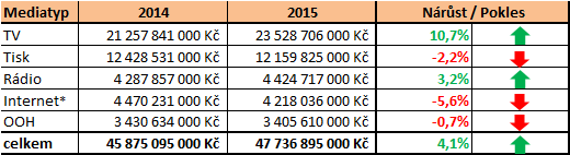 *Pozn.: Internet zahrnuje pouze displej reklamu.