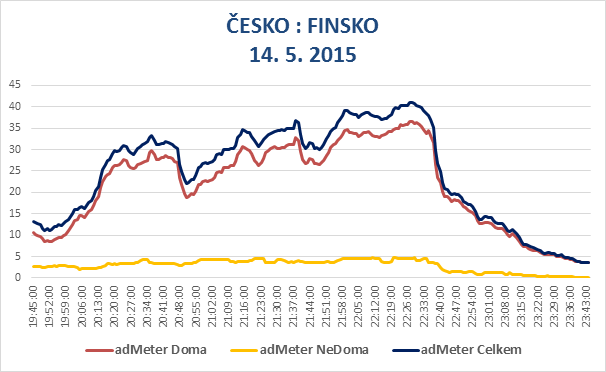 Sledovanost (rating %) doma a mimo domov, Česko - Finsko