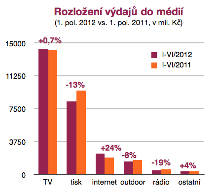 Monitorované výdaje do médií za první pololetí 2012 meziročně nižší o 3,4 %.