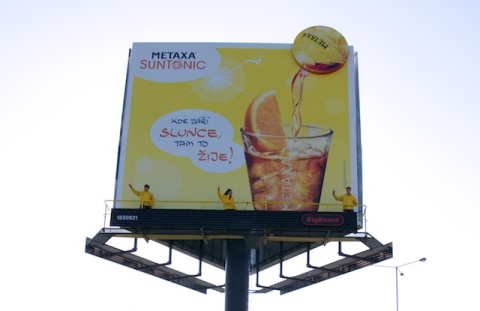 Značka Metaxa z portfolia společnosti Rémy Cointreau Czech/Slovakia od pondělí 13. května komunikuje v duchu sloganu „Dotkni se slunce“ neobvyklým outdoorem. Po dobu dvou týdnů budou na ochozu BigBoardu, umístěném nad křižovatkou Jižní spojky s Černokosteleckou, vždy v intervalech od 7:30 do 9:30 a od 16:30 do 18:30 tančit lidé a promovat drink Metaxa Suntonic s rituálem Sunball.