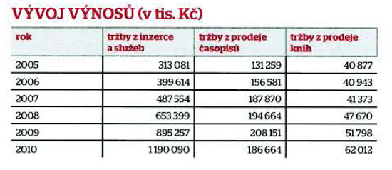 Výsledky celkově ukazují, že společnost za šest let do roku 2010 postupně zvyšovala svůj obrat na 1,438 mld. Kč – o více jak 20 % ve srovnání s rokem 2009. Vydavatelství se dokonce podařilo zvýšit v roce, který byl poznamenán poklesem reklamního trhu, tržby z prodeje inzerce, a to meziročně o 33 %. Meziročně ale klesly výnosy z prodeje časopisů, zejména kvůli rušení některých titulů (VTM Science, MF Plus, Juicy). Postupně se také v období do roku 2010 zvyšovaly tržby z prodeje knih.