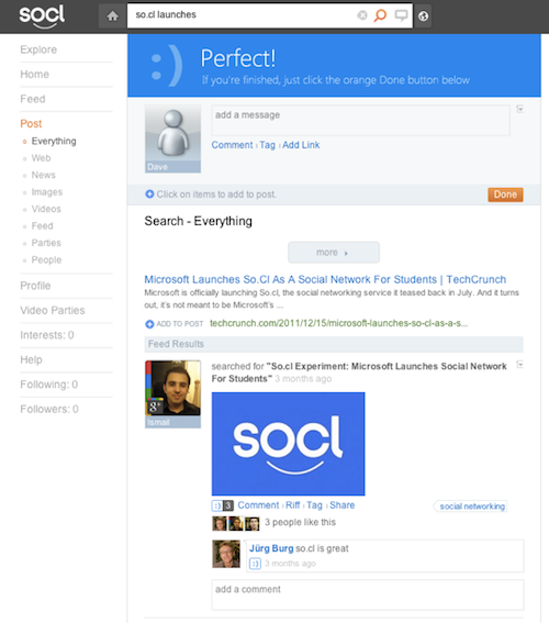 Microsoft o uplynulém víkendu spustil bez většího zájmu vlastní obdobu sociální sítě so.cl (social). Na home page vyzývá uživatele ke “kontaktu s lidmi“. Hlavními odlišujícími prvky od stávajících sociálních sítí jsou možnosti sdíleného vyhledávání a „objevování nových zájmů“. Uživatelé, kteří se k službě přihlásí, tak mohou vidět hledané výrazy a k nim sdílené komentáře. So.cl v sobě spojuje internetové prohlížení, vyhledávání a sociální síť.