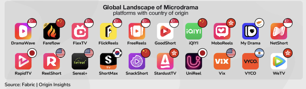 Valná většina z nich pochází z asijského regionu – ze Singapuru, Číny, Hongkongu, Japonska, Jižní Koreje. Z USA je například již zmíněný ReelShort a také Sereal+ či Vic, z Argentiny VYCO a Kypru MyDrama.