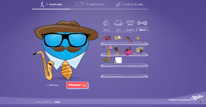 Ukázka valentýnské mobilní aplikace Milka