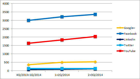 Mezi nejrychleji rostoucí sítě na českém trhu podle výzkumu patří Google+, jejíž týdenní návštěvnost se v letošním druhém a třetím čtvrtletí ve srovnání s obdobím posledního čtvrtletí 2013 a prvního čtvrtletí 2014 zvýšila o více než 50 % na 0,53 mil. osob. Rychle v letošním roce rostla i síť LinkedIn, ukazuje MML. Celkově se návštěvnost za uplynulý necelý rok zvýšila všem sledovaným zahraničním sociálním sítím včetně Facebooku.