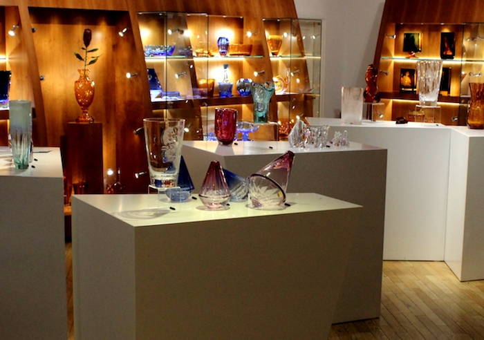 Celá expozice obsahuje přes 200 položek – váz, objektů, ale také přes stovku drobnějších a cenově dostupných kusů, jako jsou například skleničky, misky či slánky. Zákazníci zde najdou také díla slavných výtvarníků, mimo jiné od Františka Víznera, Stanislava Libenského nebo Karla Bečváře. Jedním z nejdražších exponátů je instalace pod názvem „Čas“, jejíž hodnota přesahuje milion korun.