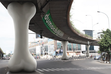 V Indonésii agentura Publicis v rámci kampaně pro výživový doplněk s vápníkem Dumocalcin pracovala s nosnými pilíři mostu, které přeměnila na obrovské silné kosti.
