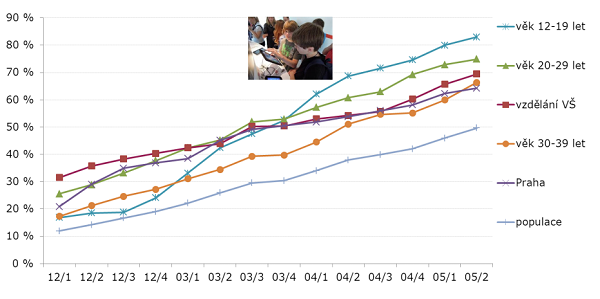 Vybavenost elektronických zařízení už v Česku prolomila hranici 50 %,
