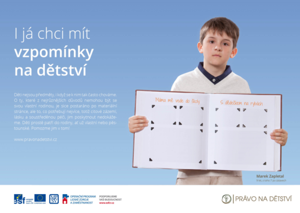 Kreativní pojetí kampaně vychází z klíčového sdělení: „Vzpomínky na dětství jsou to nejhezčí, co máme, a proto na ně mají právo všechny děti v České republice.“ „Z tohoto sdělení pak vychází i obrazový motiv celé kampaně – dítě držící rodinné fotoalbum s chybějícími fotkami. Tento motiv tak slouží jako symbol toho, že sebelepší institucionální péče nedokáže nahradit léta prožitá v rodině,“ uvedl David Čermák, ředitel agentury Momentum.