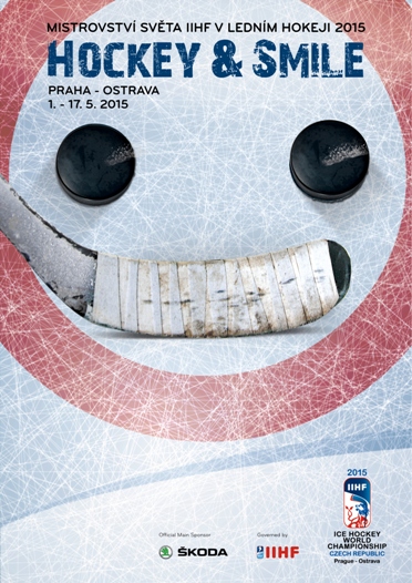 Mistrovství světa v ledním hokeji, které se bude v roce 2015 konat od 1. až 17. května v České republice, bude provázet vizuál s prvkem „hokejového smajlíku“.