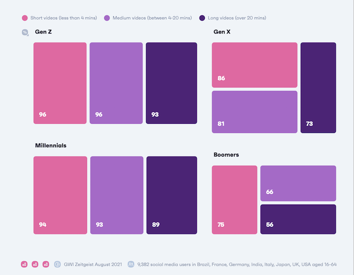 Ve všech věkových kategoriích jsou nejvíce oblíbená krátká videa, a to díky tomu, že se vytvářejí rychle a mají tendence k méně uhlazenému a spontánnějšímu obsahu. Naopak delší videa často obsahují návody nebo tipy k používání určitých produktů a jsou oblíbená spíše v mladších věkových kategoriích.