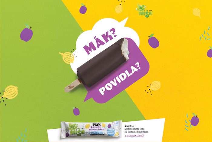 Značka nanuků Míša uvádí na trh tři nové příchuti – višeň, mák a povidla, skořice a jablko. Na českém a slovenském trhu je představí kampaň, která pracuje s různými názory lidí na to, jak novinky vlastně chutnají, zda víc makově, nebo povidlově, respektive víc jablečně, nebo skořicově aj.