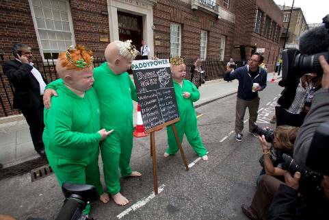Sázková kancelář Paddy Power poslala do ulic obrovská mimina s korunkou na hlavě, která berou sázky nejen na pohlaví, ale i na jméno dítěte.