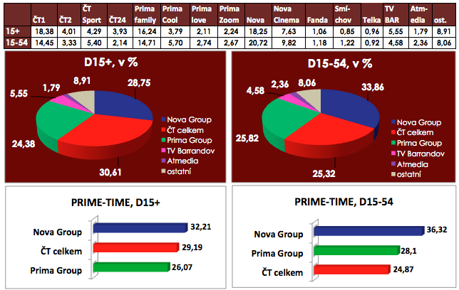 diváků starších 15 let. Nejsledovanějšími byly Vražda kočky domácí a Máme rádi Ćesko.