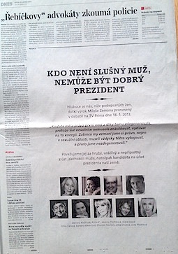 Deníky MF Dnes a Právo přinášejí inzeráty vyzývající Miloše Zemana k omluvě. S konstatováním „Kdo není dobrý muž, nemůže být dobrý prezident” požadují známé představitelky kulturního života, např. Daniela Kolářová, Anna K., Klára Issová, Jiřina Šiklová či Chantal Poullain omluvu od Miloše Zemana za výrok pronesený v televizní diskusi Prima family, že „zemani museli své ženy znásilňovat, a proto nezdegenrovali”. Zmíněné osobnosti považují tento výrok za hrubý, urážlivý a nepřípustný.