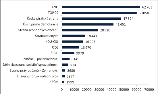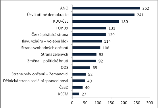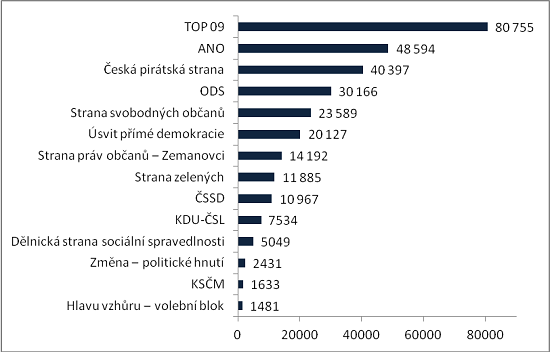 Z hlediska počtu fanoušků vede s výrazným náskokem TOP 09 (více než 80 000), dále pak ANO (více než 48 000), Česká pirátská strana (více než 40 000), ODS (více než 30 000) a Strana svobodných občanů (více než 23 000).