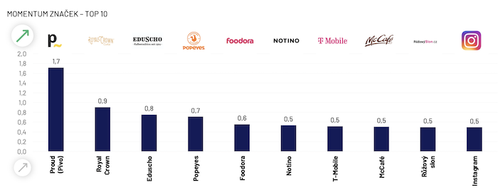 Mezi skokany roku, tedy značky, kterým se podařilo dostat se za poslední rok blíže ke svým spotřebitelům, patří pivní značka Proud, dále Royal Crown, Eduscho, Popeyes a Foodora.