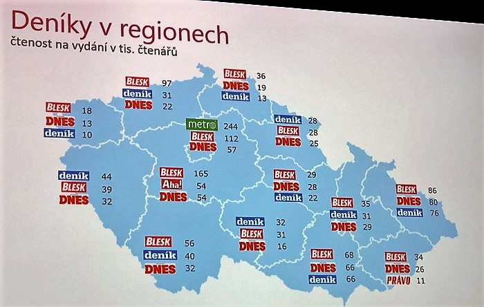 Deník Blesk zůstává nejčtenější v deseti krajích České republiky. V Plzeňském kraji, na Vysočině a v Královéhradeckém kraji je první Deník, v Praze zůstává na pozici nejčtenějšího deníku Metro.