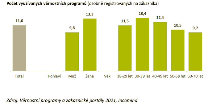 Nejrůznější věrnostní programy ovlivňují zákaznické chování tří čtvrtin české populace. Průměrný dospělý Čech či Češka využívá 12 různých věrnostních programů. Mezi ty nejznámější se řadí především programy potravinářských řetězců a lékáren. Vyplývá to z výzkumu „Věrnostní programy a zákaznické portály 2021“, který uskutečnila výzkumná agentura Incomind.