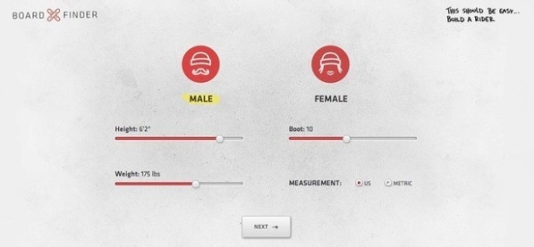 Snowboardová značka Burton na rozdíl od výše jmenovaných spoléhá na doporučení vzešlá z dotazníku, který zákazník sám vyplní. Výsledky jsou pak zobrazeny s procentuálním vyhodnocením vhodnosti konkrétního produktu. Burton navíc vysvětluje, proč je konkrétní výrobek – například typ snowboardu – pro zákazníka vhodnější.