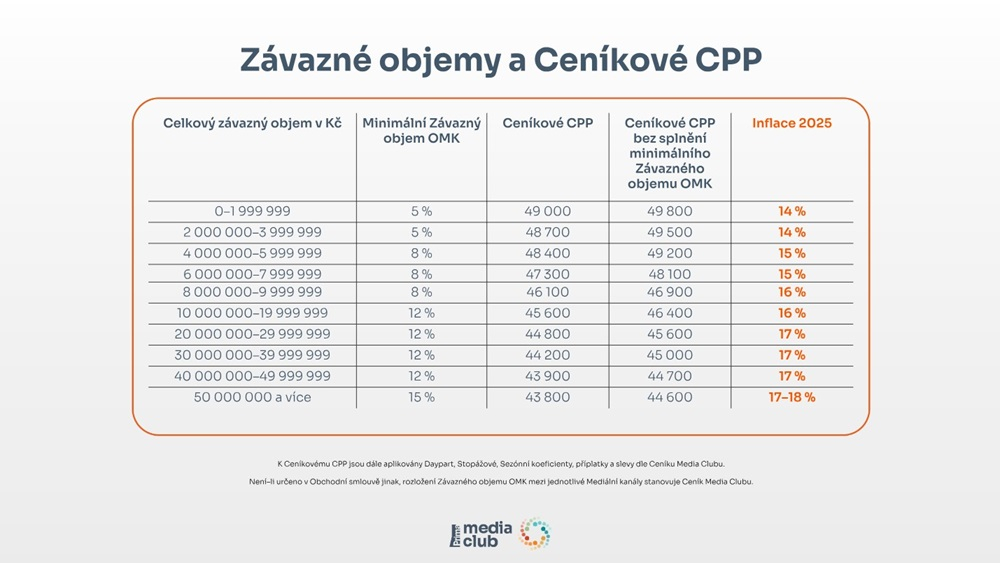 # TV # reklama # Media Club # cena # inflace # obchodní politika # CPP # Vladimír Pořízek # ceník # TV reklama # 2025