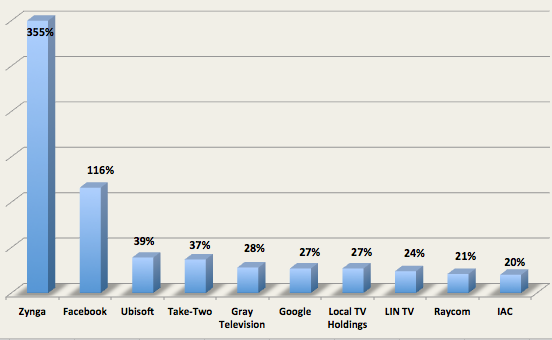 Nejrychleji rostoucí jsou přitom digitální mediální společnosti. Producent sociálních her Zynga svůj obrat ve Spojených státech v roce 2010 více než zčtyřnásobil na celkových 402 mil. USD a stala se tak za rok 2010 vůbec nejrychleji rostoucí mediální firmou. Odhadovaný obrat Facebooku za oceánem se v předloňském roce zvedl o necelých 30 % a dosáhl téměř 2 miliard USD. Celkové obraty pro digitální média se v roce 2010 zvýšily o 18 %.