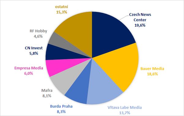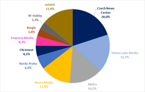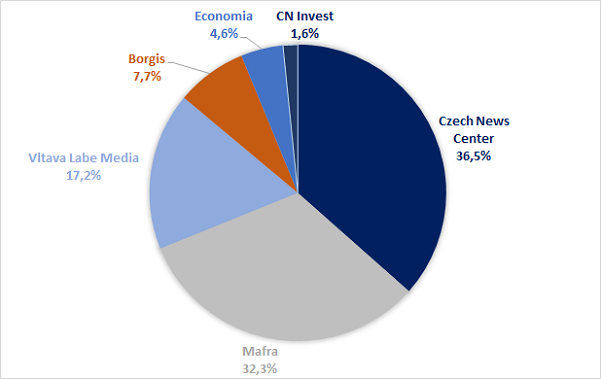 Společnost Czech News Center má na tiskovém trhu z pohledu počtu čtenářů největší podíl nejen na trhu celkem, ale i v rámci jednotlivých médií, tedy mezi deníky i časopisy.