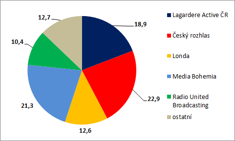 Nejsilnějším rádiovým vlastníkem z pohledu podílu na trhu zůstává Český rozhlas, který díky rostoucí poslechovosti některých svých stanic – zejména Radiožurnálu – mírně zvýšil svůj podíl na rádiovém trhu. Aktuálně mu podle nových dat za první letošní pololetí patří téměř 23% podíl.