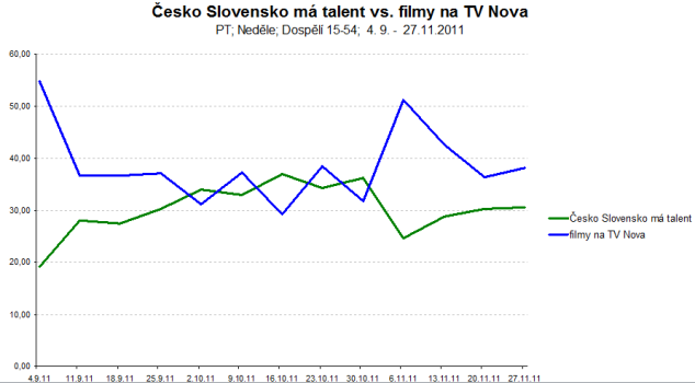 Letošní vysílání ČS má talent se snažila konkurenční Nova vyblokovat sázkou na českou filmovou produkci. Tato strategie se jí osvědčila a až na pár výjimek dosahovaly filmy vyšší sledovanosti než reality show. Platí to pro obě cílové skupiny, tedy D15+ a D15-54.